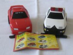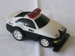 schwarze, nicht durchsichtige Scheiben und angedeutete Targa-Dächer. Aufgesetzter Heckspoiler in Wagenfarbe, mit verzerrter Karosserie. Schwarze Heck- und Frontstossstange. Einsatzfahrzeug der Japanischen Polizei mit roter Lichtbar auf dem Dach und und schwarze Hoheitszeichen auf der Motorhaube und den Seiten. Unter der Frontstossstange eine schwarze Frühungsschiene für die Verwendung auf der Do-Town-Piste mittels Batteriebetrieb. Kolorierte Lichter. Weisse 5-Steg-Felgen mit Gummi-Reifen. Nur Fahrzeug alleine ohne Piste