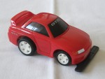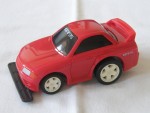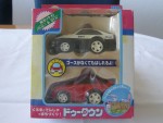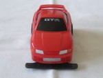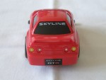 schwarze, nicht durchsichtige Scheiben. Aufgesetzter Heckspoiler in Wagenfarbe mit verzerrter Karosserie. Auf der Front- Heckscheibe und den Seiten die weissen Aufdrucke "Skyline GT-R". Unter der Frontstossstange eine schwarze Frühungsschiene für die Verwendung auf der Do-Town-Piste mittels Batteriebetrieb. Kolorierte Lichter. Weisse 5-Steg-Felgen mit Gummi-Reifen. Nur Fahrzeug alleine ohne Piste