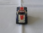 schwarze, nicht durchsichtige Scheiben und Bodengruppe, ohne Heckplatte und erhöhten Heckräder. Weisse Rückspiegel an der A-Säule angebracht. Auf der Frontscheibe ein rot-weisser Aufkleber mit dem Aufdruck "Nissan". Auf dem ganzen Auto ein weiss-roter Streifen, teils als Aufkleber und diverse Werbeaufdrucke. Auf den Seiten ein weiss-rot-blau-schwarzer Aufkleber mit dem Aufdruck der Startnummer 47 sowie ein weisser Aufdruck "Igel". Graue 6-Steg-Felgen mit Gummi-Reifen und Pull-Back-Antrieb. Fahrzeug mit normaler Choro-Q Karosserie aber unterschiedlichem Chassis, aus nicht bekannter Serie und Funktion