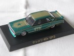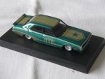 durchsichtige Scheiben, schwarzes Interieur, aufgesetzter Heckspoiler und schwarze Scheibenrahmen. Gelbe Streifen über dem ganzen Fahrzeug und den Seiten mit einem grünen Stern auf der Motorhaube und dem gelben Aufdruck "Datsun 110" auf den Seiten. Kolorierte Lichter in der Originalkonfiguration. Silberne Stahlfelgen und Profilgummi-Reifen, aus der Sonderserie Best 3 Libertywalk bestehend aus einer weiteren Farbvariante und 2 Datsun 240 ZG (S 30)