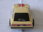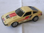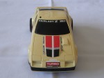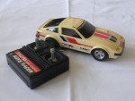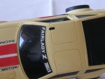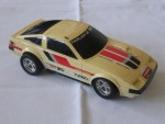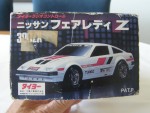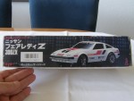 schwarze, nicht durchsichtige Scheiben mit angedeuteten Targa-Dächer und Stossstangen. Auf den Seiten und der Motorhaube weiss-grau-schwarze Streife und weitere diverse Aufkleber wie "Plasma Turbo 300 ZX V-6 Turbo". Auf der Frontscheibe ein Aufkleber mit dem Aufdruck "Fairlady Z 300 ZX". Kolorierte Lichter. Funkantenne für den RC-Betrieb mit der Fernsteuerung rechts an der Dach-Ecke angebracht, fehl. Chrom 5-Steg-Felgen mit Gummi-Reifen und lenkbare Vorderräder