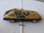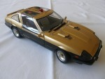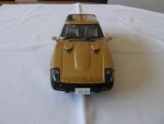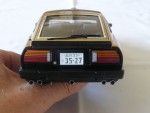 durchsichtige Scheiben, inklusive Targa-Dächer-Flügeltüren, Kugelabweiser auf der Motorhaube, grau-schwarzes Interieur und Funkantenne auf dem Dach. Schwarze Entlüftungsgitter auf der Motorhaube und Scheibenwischer. Zweifarben-Lackierung mit Seitenspiegel an der A-Säule montiert, Jalousie an den hinteren Seitenfenstern, Heckspoiler, Stossschutzleisten auf den Seiten und 4-läufige Maschinen-Pistolenbatterie in Schützenturm, in Wagenfarbe. Dem Seibu-Kaisatsu-Super-Z aus der Japanischen Krimiserie nachempfunden, mit ausklappbarem Drehlicht auf dem Dach. Auf der Motorhaube und den Seiten schwarz-gold-weisse Aufdruck "Nissan Fairlady Z". Kolorierte Lichter mit Abdeckungen auf den Scheinwerfern, inklusive Zusatzscheinwerfern unter der Frontstossstange. Gelenkte silber-goldene 8-Doppelsteg-Felgen mit Profilgummi-Reifen