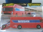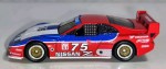 durchsichtige Scheiben, schwarzes Renninterieur, Überrollkäfig und schwarze Heckblende. Grosser, aufgesetzter Heckspoiler und Rückspiegel in Wagenfarbe, an der A-Säule angebracht. 3-Farbenlackierung. Dem 1994-er Siegerfahrzeug der US-IMSA-GTS Rennserie des Clayton Cunningham Racing-Teams nachempfunden, mit der Startnummer 75, des Fahrer S. Millen. Kolorierte Lichter. Silbern-goldene LM-Felgen im BBS-Design und Renngummi-Reifen. Fahrzeug aus der Car Culture, Real-Rider Team Transporter Serie als Die-Cast, zusammen mit einem Frontlenker-Renntransporter Euro Hauler als Komplett-Set