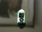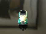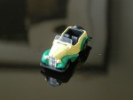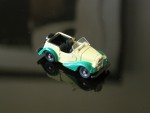 4-sitziges offenes Convertible mit schwarzem Interieur, Stossstangen und Reserverad am Heck. Lizenz-Auto auf Austin Basis aus den Anfängen von Datsun. Graue Hartplastikräder |