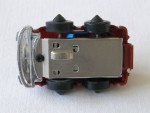 | Massstab | 1:68 |  blaue, nicht durchsichtige Scheiben. Chrom Frontstossstange und schwarzes Schwungrad im Heck, wirksam auf die Vorderräder. Auf dem Dach fehlt das gelbe Schlauchboot. Auf der Motorhaube ein rot-weiss-schwarzer Kleber. Schwarze Kreisel-Felgen mit Gummireifen. Silberne Metallbodenplatte ohne Herseteller-Hinweis aber baugleich wie bei den Nomura Toy's