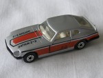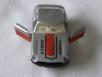 durchsichtige Scheiben, weisses Interieur. Zu öffnende Türen. Mattschwarze Bodenplatte und Stossstangeneinheit. Auf der Motorhaube und den Seiten rot-schwarze Streifen mit dem schwarzen Aufdruck "Datsun 2+2". Chrom-5-Doppelsteg-Felgen mit Hartplastikräder. Fahrzeug der Superfast Serie aus England Produktion |