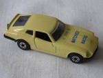 durchsichtige Scheiben, schwarzes Interieur. Nicht zu öffnende Türen. Auf der Motorhaube den blauen Aufdruck "Matchbox Racing". Schwarz-glänzende Bodenplatte und Stossstangeneinheit. Chrom-5-Doppelsteg-Felgen mit Hartplastikräder. Fahrzeug der Superfast Serie aus Bulgaria Produktion |