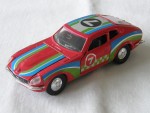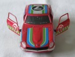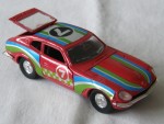 | Massstab | 1:40 |  durchsichtige Scheiben, schwarzes Interieur, Heckblende und Kühlergrill. Zu öffnende Türen, Motorhaube mit Motorapplikation und Heckklappe. Chrom Stossstangen. Auf dem ganzen Auto grün-blau-rot-silberne Streifen-Aufkleber mit der rot-schwarzen Startnummer 7, auf den Seiten und dem Dach. Kolorierte Lichter mit Glasabdeckungen auf den Scheinwerfern. Chrom-5-Steg-Felgen, nicht durchbrochen, mit Gummi-Reifen