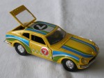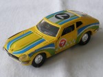 | Massstab | 1:40 |  durchsichtige Scheiben, schwarzes Interieur, Heckblende und Kühlergrill. Zu öffnende Türen, Motorhaube mit Motorapplikation und Heckklappe. Chrom Stossstangen. Auf dem ganzen Auto grün-blau-rot-silberne Streifen-Aufkleber mit der rot-schwarzen Startnummer 7, auf den Seiten und dem Dach. Kolorierte Lichter mit Glasabdeckungen auf den Scheinwerfern. Chrom-5-Steg-Felgen, nicht durchbrochen, mit Gummi-Reifen