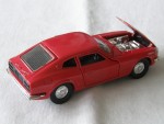 durchsichtige Scheiben, schwarzes Interieur, Heckblende und Kühlergrill. Zu öffnende Türen, Motorhaube mit Motorapplikation und Heckklappe. Chrom Stossstangen. Kolorierte Lichter mit Glasabdeckungen auf den Scheinwerfern. Chrom-5-Steg-Felgen, nicht durchbrochen, mit Gummi-Reifen