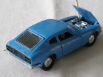 durchsichtige Scheiben, schwarzes Interieur, Heckblende und Kühlergrill. Zu öffnende Türen, Motorhaube mit Motorapplikation und Heckklappe. Chrom Stossstangen. Kolorierte Lichter mit Glasabdeckungen auf den Scheinwerfern. Chrom-5-Steg-Felgen, nicht durchbrochen, mit Gummi-Reifen