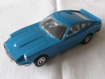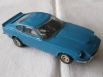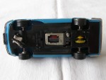 durchsichtige Scheiben (Front- und Heckscheibe haben Rissen), schwarzes Interieur und Kühlergrill mit weiss-roter Fahrerfigur, als rechtslenker Fahrzeug. Chrom Stossstangen und Scheinwerfer. Fahrzeug für die elektrische Schlitz-Rennbahn. Chrom-5-Steg-Felgen mit Gummi-Reifen |