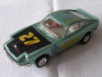 | Massstab | 1:32 |  durchsichtige Scheiben, beiges Interieur und Kühlergrill mit rot-gelber Fahrerfigur, als rechtslenker Fahrzeug. Chrom Stossstangen und Scheinwerfer. Auf der schwarzen Motorhaube die gelbe Startnummer 27 und den roten Aufdruck "Others Fellow". Auf dem Dach die Aufdrucke "Datsun". Auf den Seiten die gelb-schwarzen Aufdrucken "Bison Computer". Kolorierte Rücklichter. Fahrzeug für die elektrische Schlitz-Rennbahn. Chrom-4-Steg-Felgen mit Gummi-Reifen