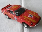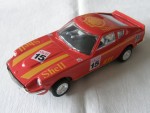 | Massstab | 1:32 |  durchsichtige Scheiben, schwarzes Interieur und Kühlergrill mit weiss-grüner Fahrerfigur, als rechtslenker Fahrzeug. Chrom Stossstangen und Scheinwerfer. Auf der Motorhaube den gelben Aufdruck "Shell" und der weiss-schwarzen Startnummer 15. Auf dem Dach die gelbe Muschel und die Aufdrucke "Shell". Auf den Seiten die gelb-weiss-schwarzen Aufdrucken "GTI Shell Nr. 15". Kolorierte Rücklichter. Fahrzeug für die elektrische Schlitz-Rennbahn. Chrom-4-Steg-Felgen mit Gummi-Reifen