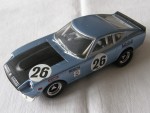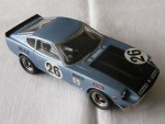 | Massstab | 1:32 |  durchsichtige Scheiben, schwarz-weisses Interieur mit Überrollkäfig, schwarzer Kühlergrill, Heckspoiler, Motorhaube und weisser Fahrerfigur, als rechtslenker Fahrzeug. Silber eingefärbte Scheibenrahmen, angedeutete Scheibenwischer und zweiflutige Auspuffendrohre. Weisser Frontspoiler. Auf der Motorhaube die weiss-schwarze Startnummer 26 sowie die Aufdrucke "Shell". Auf den Seiten die weiss-schwarze Startnummer 26 und diverse Werbeaufkleber. Kolorierte Rücklichter. Schwarze 6-Steg-Felgen mit Chromfelgenbett und Gummi-Reifen und Chrom-Zentralverschluss. Als Custom-Rennfahrzeug, ohne Stossstangen individualisiertes Fahrzeu eines unbekannten Künstlers. Sehr schöne Arbeit