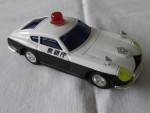 | Massstab | 1:29 |  blaue, nicht durchsichtige Scheiben und gelbe Scheinwerferabdeckungen. Chrom Stossstangen, Kühlergrill, Rückspiegel auf den Kotflügeln montiert und Heckblende. Einsatzfahrzeug der Japanischen Polizei mit rotem Drehlicht auf dem Dach und Hoheitszeichen auf der Motorhaube und den Seiten. Kolorierte Rücklichter. Chorm- Felgen im Strahlendesign und Gummi-Reifen mit Schwungrad-Antrieb