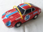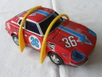 | Massstab | 1:24 |  blaue, nicht durchsichtige Scheiben und Plastik-Abdeckungen auf den Scheinwerfern. Verzerrte Blech-Karosserie. Silber gefärbte Scheibenrahmen und Chrom Stossstangen, Kühlergrill und Heckblende. Über dem ganzen Auto ein blauer Pfeil-Streifen und der weissen Startnummer 36. Auf den Seiten ein weisser Kreis mit blauer Startnummer 36 und diversen Werbeaufdrucken. Über dem Auto gelbe Plastik-Bügel für den geplanten Überschlag durch den batteriebetriebenem Anstossmotor und Überschlagvorrichtung im Boden. Chrom-5-Steg-Felgen mit Profilgummi-Reifen