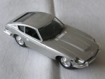 fertig, nach Originalvorlage, ohne Leim, aber mit Farbe individualisiert gebauter Plastik-Bausatz. Durchsichtige Scheiben, schwarzer Interieur und angedeutete Scheibenwischer. Chrom Stossstangen und Lichter, hinten koloriert. Chrom-5-Steg-Felgen mit Gummi-Reifen |