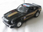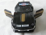durchsichtige Scheiben, schwarzes Interieur. Aufgesetzte Kotflügelverbreiterungen, Heck- und Frontspoiler in Wagenfarbe. Chromstossstangen hinten und vorne (komplett). Auf der Motorhaube und den Seiten goldene Streifen mit dem Aufdruck "Turbo" auf den Seiten. Auf der Motorhaube den weissen Aufdruck "Nissan Team". Auf dem Dach ein rot-blau-weisser Aufdruck "Datsun Team". Zu öffnende Türen, Motorhaube mit Motorapplikation und Heckklappe mit Reserverad im Kofferraum. Kolorierte Lichter. Chrom-6-Steg-Felgen mit Hartplastikräder