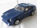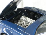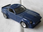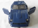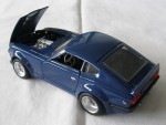 durchsichtige Scheiben, schwarze Scheibenrahmen, hellgrau-schwarzes Interieur mit Chrom-Steuerrad. Aufgesetzte Kotflügelverbreiterungen, Heck- und Frontspoiler in Wagenfarbe. Stossstangen vorne nicht montiert und hinten schwarz. Zu öffnende Türen, Motorhaube mit Motorapplikation und Heckklappe mit Reserverad im Kofferraum (fehlt). Kolorierte Lichter. Chrom-8-Doppelsteg-Tiefbett-Felgen mit Profilgummi-Reifen. Custom-Einzelstück mit diversen Verbesserungen, auf BBurago-Basis. Hersteller ist R. Hess. Herzlichen Dank für dieses schöne Stück