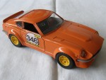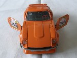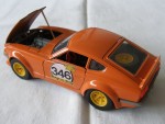 durchsichtige Scheiben, schwarzes Interieur mit rotem Steuerrad und Schalthebel. Aufgesetzte Kotflügelverbreiterungen, Heck- und Frontspoiler in Wagenfarbe. Chromstossstangen hinten und vorne (komplett). Zu öffnende Türen, Motorhaube mit Motorapplikation und Heckklappe mit Reserverad im Kofferraum. Auf den Seiten ein weiss-schwarz-gelber Aufdruck "Olio-Fiat" und die schwarze Startnummer 346. Kolorierte Lichter. Gelbe 6-Steg-Felgen mit Hartplastikräder