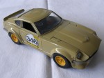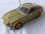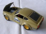 | Massstab | 1:24 |  durchsichtige Scheiben, schwarzes Interieur mit rotem Steuerrad und Schalthebel. Aufgesetzte Kotflügelverbreiterungen, Heck- und Frontspoiler in Wagenfarbe. Chromstossstangen hinten und vorne (komplett). Zu öffnende Türen, Motorhaube mit Motorapplikation und Heckklappe mit Reserverad im Kofferraum (fehlt). Auf den Seiten ein weiss-schwarz-gelber Aufdruck "Olio-Fiat" und die schwarze Startnummer 346. Kolorierte Lichter. Gelbe 6-Steg-Felgen mit Hartplastikräder