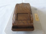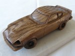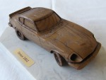 Display-Model eines serienmässigen Strassenautos, wie es ausschliesslich in den USA ausgeliefert wurde, mit den wuchtigen Stossstangen. Sieht aus wie aus Holz gefertigt, aber nicht bekannt aus welchem Material. Auf einem Marmor-Sockel montiert. Messingplättchen mit Gravur "Datsun 280Z" |