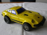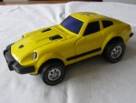| Massstab | 1:18 |  blaue, nicht durchsichtige Scheiben und verzerrte Karosserie. Schwarze Kunststoff-Stossstangen-Heckleuchten-Einheit, Entlüftungsgitter auf der Motorhaube und Stossschutzleisten auf den Seiten. Chrom Scheinwerfer und Embleme auf der Motorhaube. Chrom-6-Doppel-Steg-Felgen mit Hartplastikräder und Schwungrad-Antrieb. Ziemlich bespielt aber komplett