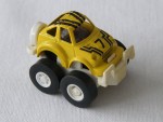 | Massstab | 1:98 |  schwarze, nicht durchsichtige Scheiben und angedeutete Targa-Dächer. Metallkarosserie, stark verzerrt mit weissem Rammschutz vorne und hinten samt beweglichem Reserverad darin montiert. Hoch gebaut als Big-Foot. Weisse Bodengruppe. Auf der Motorhaube und dem Dach schwarze Streifen sowie die Startnummer 7. Weisse 7-Steg-Felgen mit Gummi-Reifen und Pull-Back-Antrieb