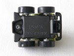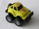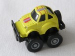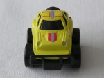 schwarze, nicht durchsichtige Scheiben und angedeutete Targa-Dächer. Stark verzerrte Metallkarosserie, mit schwarzem Rammschutz vorne und hinten, samt darin montiertem, beweglichem Reserverad. Hoch gebaut als Big-Foot. Schwarze Bodengruppe. Auf der Motorhaube und dem Dach rot-silberne Streifen. Graue 7-Steg-Felgen mit Gummi-Reifen und Pull-Back-Antrieb |