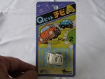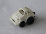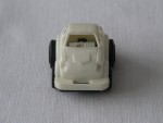 ohne Scheiben, ohne Interieur und angedeutete Targa-Dächer. Stark verzerrte Plastikkarosserie. Schwarze Bodengruppe mit Öse zum Gebrauch als Schlüsselanghänger. Schwarze Scheiben-Felgen mit Gummi-Reifen und Pull-Back-Antrieb |