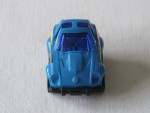 blaue, nicht durchsichtige Scheiben, inklusive Targa-Dächer und schwarze Stossstange. Plastik-Model im Choro-Q-Style. Heckplatte mit Aufdruck "Z-Machine". Auf den Seiten ein gelb-schwarz-roter Aufkleber mit dem Aufdruck "Z". Graue 8-Steg-Felgen mit Gummi-Reifen und Pull-Back-Antrieb |