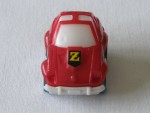 weisse, nicht durchsichtige Scheiben, inklusive Targa-Dächer und Stossstangen. Auf den Seiten schwarz-rot-gelbe Flammenaufkleber und auf der Motorhaube einen gelb-schwarzen Aufkleber "Z". Auf der Heckplatte den Aufdruck in schwarz-gelb-rot "Shark-Z". Weisse 8-Steg-Felgen mit blauen Zahnrad-Gummi-Reifen und Pull-Back-Antrieb |