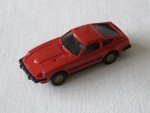 durchsichtige Scheiben, schwarzes Interieur und Stossstangen. Kolorierte Lichter. Ausführung mit Aufdruck "Turbo" im schwarzen Seitenaufprallschutz aber ohne Pull-Back-Antrieb. Kunststoffauto mit goldenen 8-Doppel-Steg-Felgen im Sterndesign und Gummi-Reifen |