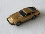 durchsichtige Scheiben, schwarzes Interieur und Stossstangen. Kolorierte Lichter. Ausführung ohne Aufdruck "Turbo" im schwarzen Seitenaufprallschutz aber mit Pull-Back-Antrieb. Kunststoffauto mit silbernen 8-Doppel-Steg-Felgen im Sterndesign und Gummi-Reifen