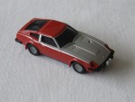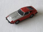 durchsichtige Scheiben, schwarzes Interieur und Stossstangen. Kolorierte Lichter. Ausführung ohne Aufdruck "Turbo" im schwarzen Seitenaufprallschutz und ohne Pull-Back-Antrieb. Kunststoffauto mit silbernen 8-Doppel-Steg-Felgen im Sterndesign und Gummi-Reifen