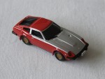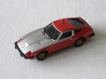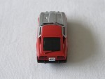 durchsichtige Scheiben, schwarzes Interieur und Stossstangen. Kolorierte Lichter. Ausführung ohne Aufdruck "Turbo" im schwarzen Seitenaufprallschutz und ohne Pull-Back-Antrieb. Kunststoffauto mit goldenen 8-Doppel-Steg-Felgen im Sterndesign und Gummi-Reifen