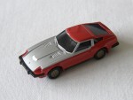 durchsichtige Scheiben, schwarzes Interieur und Stossstangen. Kolorierte Lichter. Ausführung ohne Aufdruck "Turbo" im schwarzen Seitenaufprallschutz aber mit Pull-Back-Antrieb. Kunststoffauto mit goldenen 8-Doppel-Steg-Felgen im Sterndesign und Gummi-Reifen |