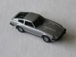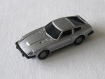 durchsichtige Scheiben, schwarzes Interieur und Stossstangen. Kolorierte Lichter. Ausführung ohne Aufdruck "Turbo" im schwarzen Seitenaufprallschutz aber mit Pull-Back-Antrieb. Kunststoffauto mit silbernen 8-Doppel-Steg-Felgen im Sterndesign und Gummi-Reifen