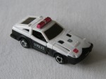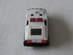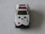 schwarze, nicht durchsichtige Scheiben, Stossstangen und Entlüftungsgitter. Einsatzfahrzeug der Japanischen Polizei mit Hoheitszeichen und roter Lichterbar auf dem Dach, als Transformer. Feststehende silber/schwarze Hartplastikräder |