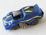 | Massstab | 1:60 |  blaue, nicht durchsichtige Scheiben. Aus der Motorhaube ein V-8 Motor mit verchromter 8-flutiger Auspuffanlage auf den Seiten, als Viertelmailen-Dragster. Auf dem ganzen Auto schwarz-gelb-blaue Aufkleber. Auf der schwarzen Heckplatte den weiss-gelben Aufdruck "Big Daddy". Goldene 8-Steg-Felgen mit Gummi-Reifen und Pull-Back-Antrieb. Fahrzeug aus der Penny-Racer-Serie