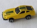 | Massstab | 1:60 |  schwarze, nicht durchsichtige Scheiben und Frontstossstange. Verschraubte Metallbodenplatte. Über dem ganzen Auto schwarz-grüne Streifen mit den schwarzen Aufdrucken "Datsun 280 ZX". Im Heck eine 4-eckige Öffnung für Aktion (fehlt). Chrom-5-Steg-Felgen mit Hartplastikräder. Einfaches Kinderspielzeug leicht bespielt, karosseriemässig komplett. Fahrzeug aus der Key-Car Serie