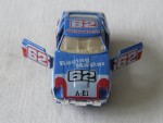 | Massstab | 1:60 |  bläuliche, durchsichtige Scheiben, weisses Interieur. Zu öffnende Türen. Chrom-Frontstossstange und Heckblende. Vernietete Kunststoffbodenplatte-Stossstangen-Einheit. Entlüftungsgitter auf der Motorhaube und Stossschutzleisten auf den Seiten in Wagenfarbe. Auf der blau-rot-weissen Motorhaube den weissen Aufdruck "Racing Master", die weiss-schwarze Startnummer 62 und schwarzen Werbeaufdruck "A-E1. Auf den rot-weissen Seiten die rot-weisse Startnummer 62 und Werbeaufdrucke. Auf dem Dach den roten Aufdruck "Racing-Master" sowie die rot-weisse Startnummer 62. Auf der Heckklappe den weissen Aufdruck "A-E1". Chrom-6-Steg-Felgen mit Chromzierring und Hartplastikräder. Unbekannter Hersteller aber baugleich wie Yatming