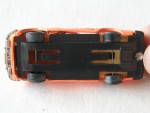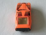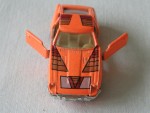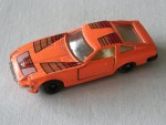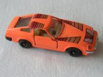 durchsichtige Scheiben, cremefarbenes Interieur. Zu öffnende Türen. Vernietete Kunststoffbodenplatte-Rückleuchten-Stossstangen-Einheit. Auf der Motorhaube braun-rot-schwarze Dreiecke. Auf dem Dach braun-rot-schwarze 4-Ecke. Schwarze 5-Steg-Felgen mit Hartplastikräder. Einfachstes Billigmodellauto aus einem grossen Die-Cast-Set |