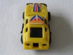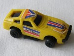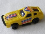 | Massstab | 1:60 |  schwarze, nicht durchsichtige Scheiben (lose in der Karosserie). Angedeutete Targa-Dächer. Verschraubte Kunststoffbodenplatte-Stossstangen-Seitenauspuff-Einheit. Auf dem ganzen Kunststoff-Auto blau-rot-weiss-gelbe Aufkleber, mit den schwarzen Aufdrucken "Datsun". Am Heck die Öffnung für die Abschussvorrichtung (fehlt). Schwarze 5-Steg-Felgen mit Hartplastikräder. Einfaches Billigmodellauto