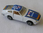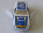 | Massstab | 1:60 |  durchsichtige Scheiben, cremefarbenes Interieur. Zu öffnende Türen. Chrom-Frontstossstange und Heckblende. Vernietete Metallbodenplatte-Stossstangen-Einheit. Entlüftungsgitter auf der Motorhaube und Stossschutzleisten auf den Seiten in Wagenfarbe. Blaue Motorhaube mit gelbem Streifen und dem weiss-roten Aufdruck "Rally Monte Carlo, Datsun Fairlady" mit der schwarzen Startnummer 28. Auf dem blauen Dach den rot-weissen Aufdruck "Nissan" und die weisse Startnummer 28. Auf der Heckklappe den gelb-roten Aufdruck "280 ZX". Chrom-6-Steg-Felgen mit Chromzierring und Hartplastikräder