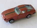 | Massstab | 1:60 |  bläuliche, durchsichtige Scheiben, cremefarbenes Interieur. Zu öffnende Türen. Chrom-Frontstossstange und Heckblende. Vernietete Metallbodenplatte-Stossstangen-Einheit. Entlüftungsgitter auf der Motorhaube und Stossschutzleisten auf den Seiten in Wagenfarbe. Über dem ganzen Auto schwarz-goldene Streifen. Chrom-6-Steg-Felgen mit Chrom-Zierring und Hartplastikräder