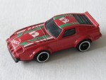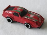 | Massstab | 1:60 |  schwarze, nicht durchsichtige Scheiben, bei verschlossenem, hinteren Seitenfenster und Heckscheibe als schwarze Jalousie. Vernietete, schwarze Bodenplatte. Kotflügelverbreiterungen, Entlüftungsgitter auf der Motorhaube und Stossstangen in Wagenfarbe. Auf der Motorhaube und dem Dach grün-weiss-schwarze Streifen und den weissen Aufdruck "280ZX" und die weisse Startnummer 12. Schwarze Scheibenräder mit Chrom-Zierring und Hartplastikräder. Einfaches Billigmodellauto
