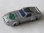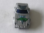 | Massstab | 1:60 |  bläuliche, nicht durchsichtige Scheiben, bei verschlossenem, hinteren Seitenfenster und Heckscheibe als graue Jalousie. Kotflügelverbreiterungen und Entlüftungsgitter auf der Motorhaube und Stossstangen in Wagenfarbe. Auf der Motorhaube ein blau-schwarzes Dreieck und darüber ein grünes Rhino. Auf dem Dach ein schwarz-blauer Aufdruck in Schildform. Chrom-8-Loch-Felgen mit Hartplastikräder. Einfaches Billigmodellauto