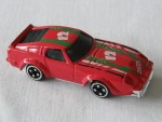 | Massstab | 1:60 |  schwarze, nicht durchsichtige Scheiben, bei verschlossenem, hinteren Seitenfenster und Heckscheibe als schwarze Jalousie. Vernietete Chrom-Bodenplatte. Kotflügelverbreiterungen, Entlüftungsgitter auf der Motorhaube und Stossstangen in Wagenfarbe. Auf der Motorhaube und dem Dach grün-weiss-schwarze Streifen und den weissen Aufdruck "280ZX" und die weisse Startnummer 12. Chrom-4-Loch-Felgen mit Chrom-Zierring und Hartplastikräder. Einfaches Billigmodellauto